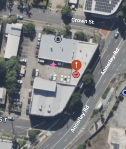 Entry to meeting room marked by the pink star. Back of building within the car park ![]() |